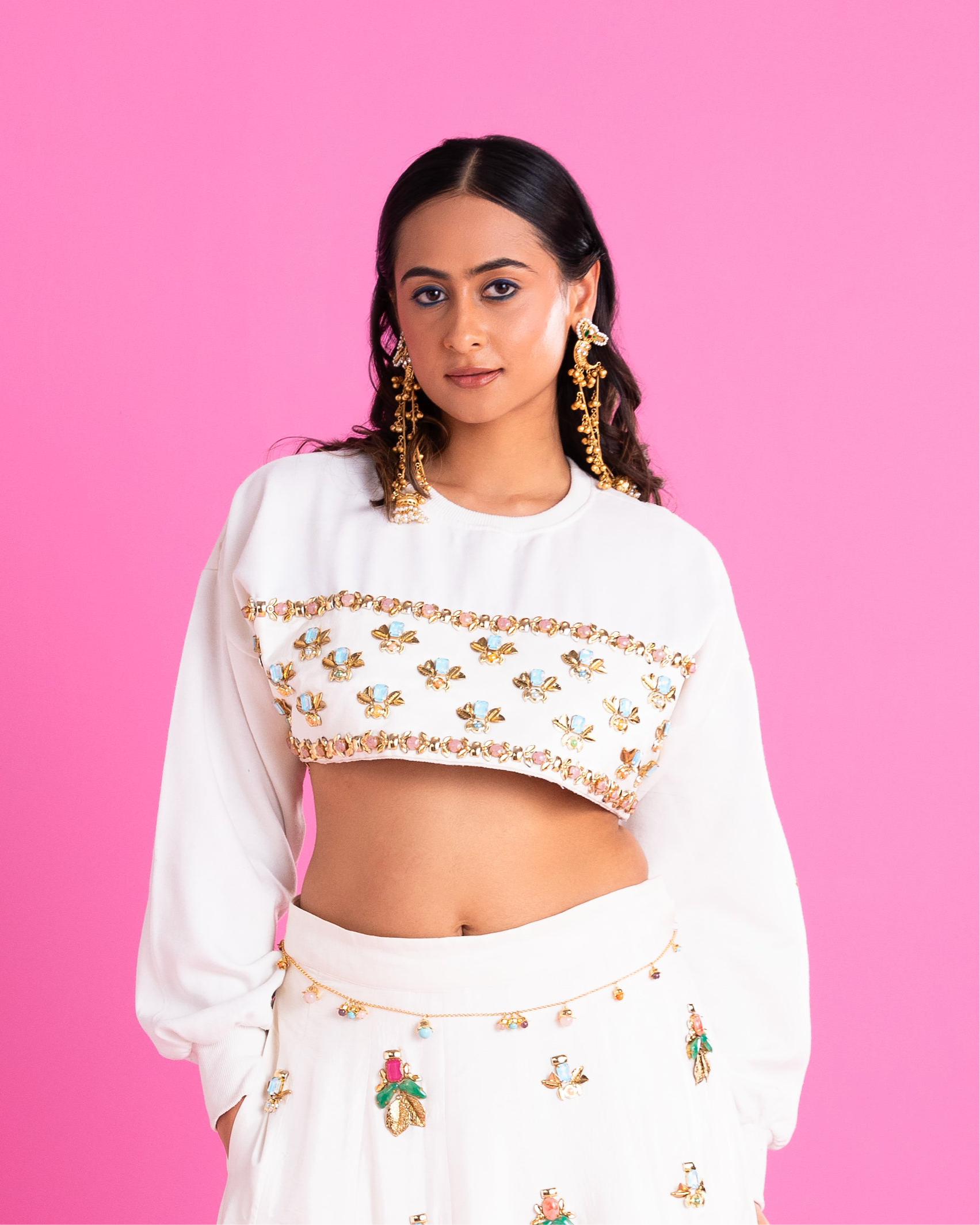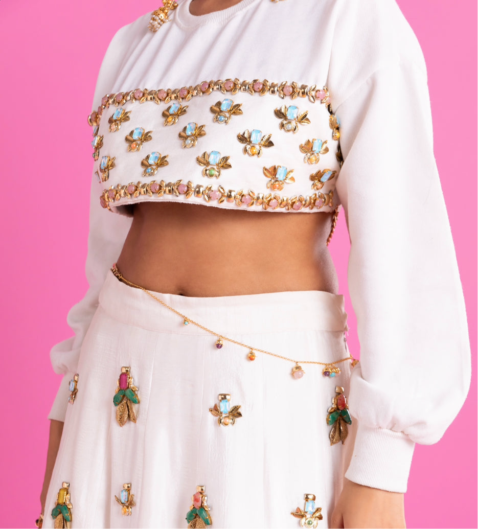 Who said comfort and drama can’t sit together? Your nani might squint. Your friends will scream. Because nobody expects a sweatshirt to pull a full lehenga moment.